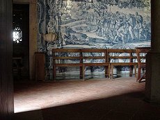 Em redor, belos azulejos setecentistas, a azul e branco, figurando passagens do Velho Testamento e dos Livros Antigos. Na opinião do Prof. Reinaldo dos Santos, saídos possivelmente das oficinas de António de Oliveira Bernardes: